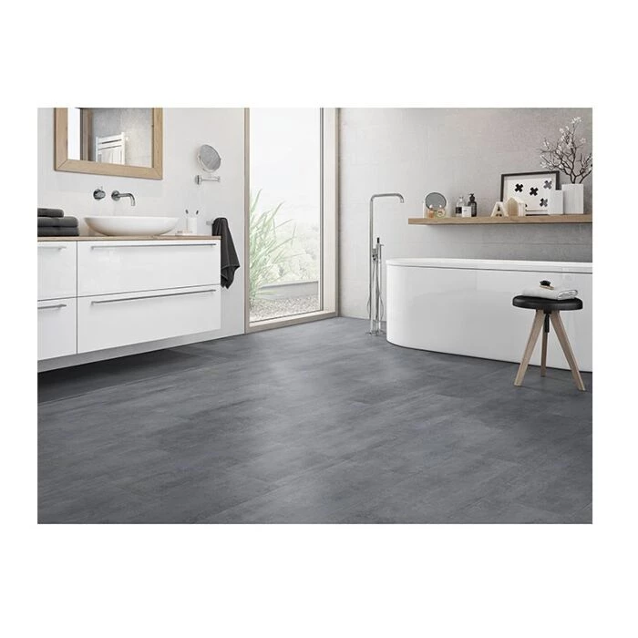 Aqua Blue Malta vinylgulvet fra B!design er et økologisk vinylgulv i et smukt, gråt beton-look.