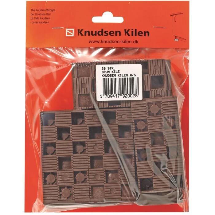 16 stk. Brun plastkiler, produceret i høj kvalitet af knudsen kilen. Kilen har et savtakket mønster der gør den særdeles skridsikker, også når den anvendes sideværts.
