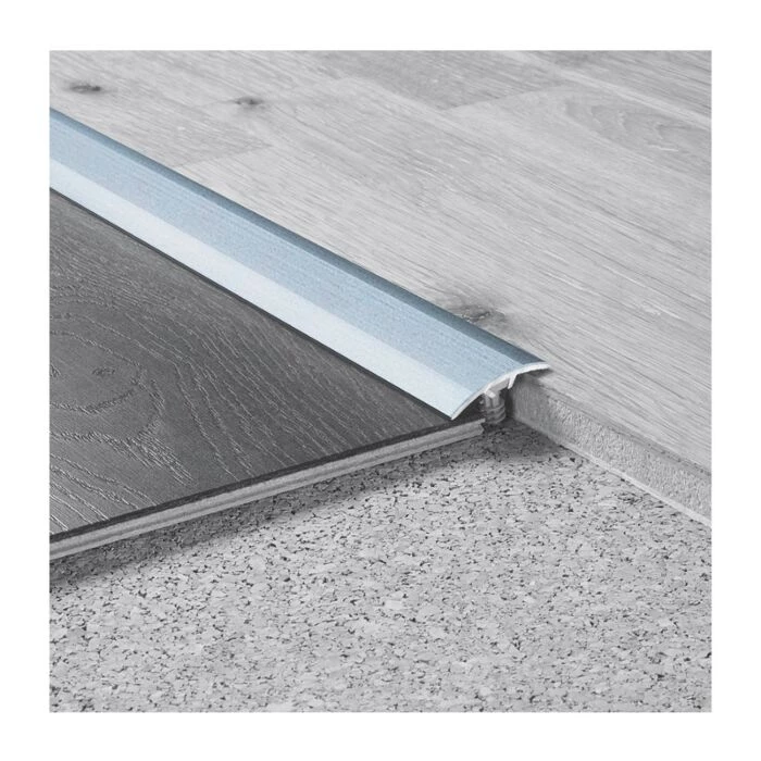 Skab en smuk overgang mellem to gulvtyper med denne overgangsprofil i aluminium med sølvfarvet overflade og skjult montering.