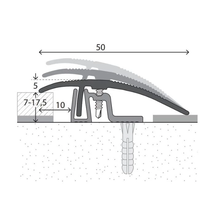 Profilen er et skruesystem i to dele og skaber en fleksibel overgang mellem gulve på højder op til 17,5 mm. Med en tilpasningsprofil kan du beskytte enderne på gulvet, undgå skarpe kanter og mindske snublefare.