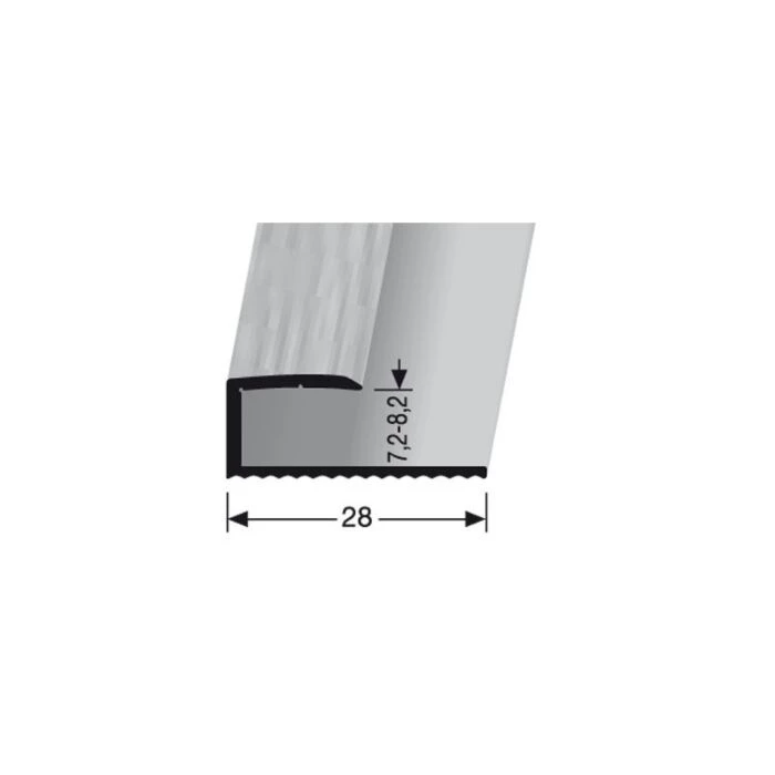 Den slidstræke afslutningsprofil passer til gulve med tykkelse på 7,2 til 8,2 mm.