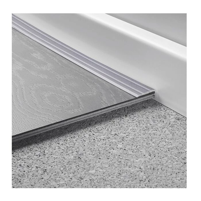 Lav en fin afslutning og kantbeskyttelse af trappetrin og andre gulvkanter med denne vinkelprofil i aluminium med overflade i rustfrit stål.