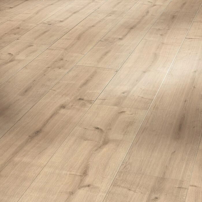 Klassisk laminatgulv fra Parador med plankegulvslook og et lyst udtryk, der passer til både moderne og traditionelt interiør.
