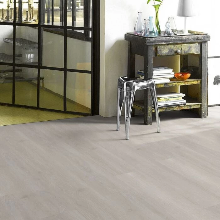 Elegant laminatgulv med plankegulvslook, der passer til både moderne og traditionelt interiør. Gulvet er velegnet til brug med gulvvarme.