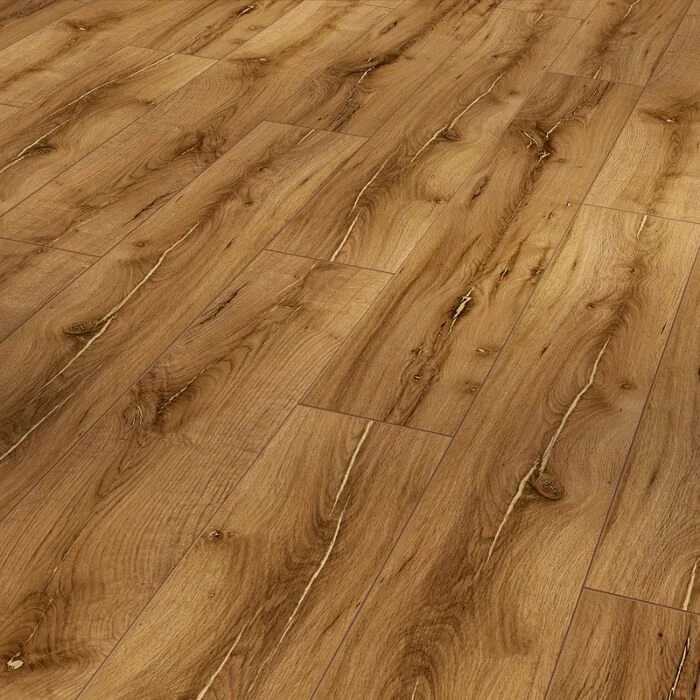 Gulvet har en rustik overfladestruktur, som ligner råt tilskåret træ. Det giver en fin fornemmelse af ægte træ og dybde til gulvet. Gulvet er desuden med side- og endekanter med omkørende fase, som fremhæver hver enkel planke og giver den samme charme og elegance som et ægte træplankegulv.
