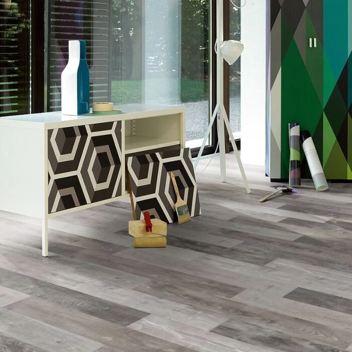 Elegant laminatgulv med plankegulvslook og flot farvespil, der passer til både moderne og traditionelt interiør. Gulvet er velegnet til brug med gulvvarme.