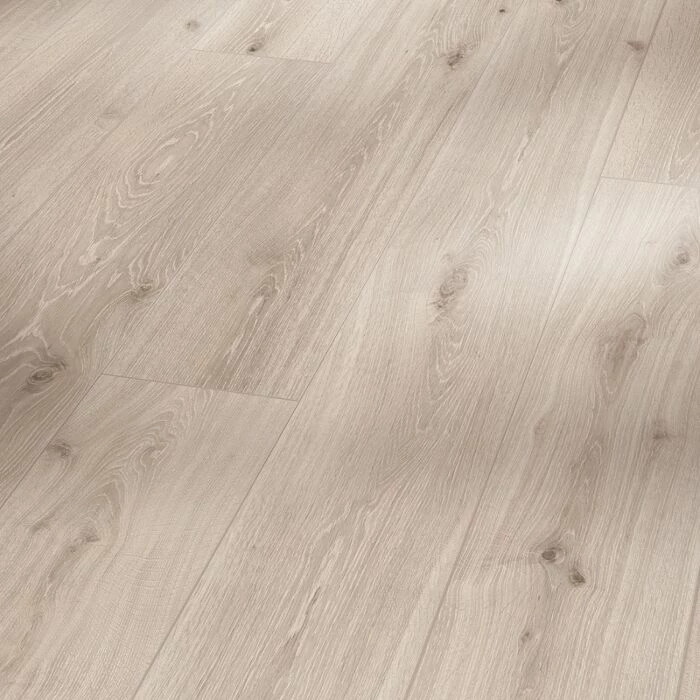 Elegant, lyst laminatgulv, der passer til både moderne og traditionelt interiør.