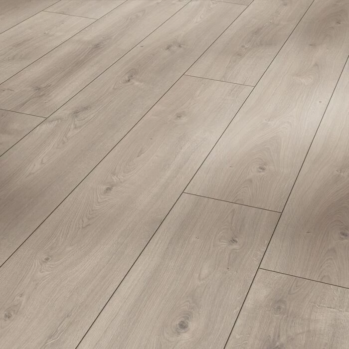 Moderne laminatgulv i et lyst, naturligt design, som passer godt ind i den nordiske indretning.