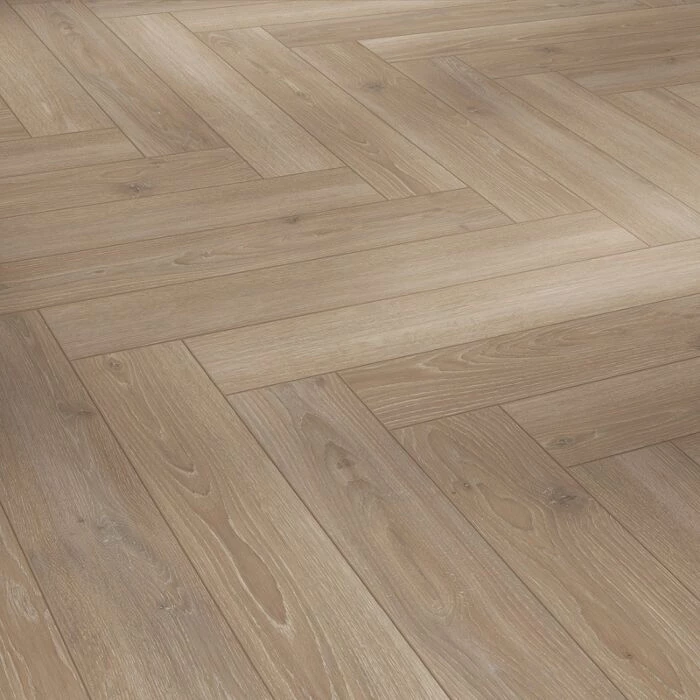 Gulvet er med side- og endekanter med omkørende fas, som fremhæver hver enkel planke og giver den samme charme og elegance som et ægte sildebensgulv. Samtidig giver den matte og naturlige struktur fornemmelsen af en naturbehandlet træoverflade, der får dets naturlige karakter til at træde elegant frem.