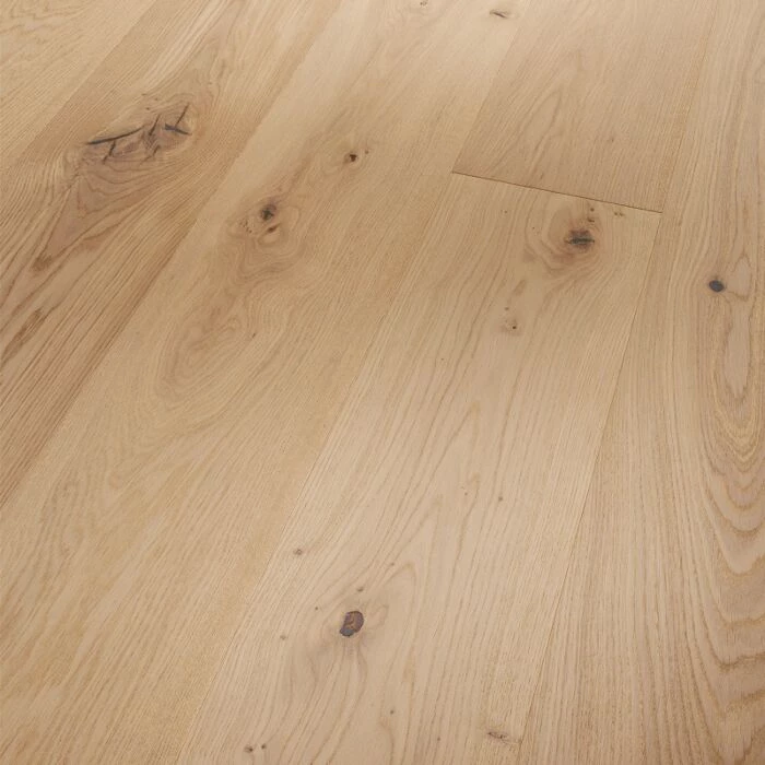 Et klassisk lamelparketgulv fra Parador i eg, som er ideel, hvis du ønsker et rustikt, nordisk udtryk.