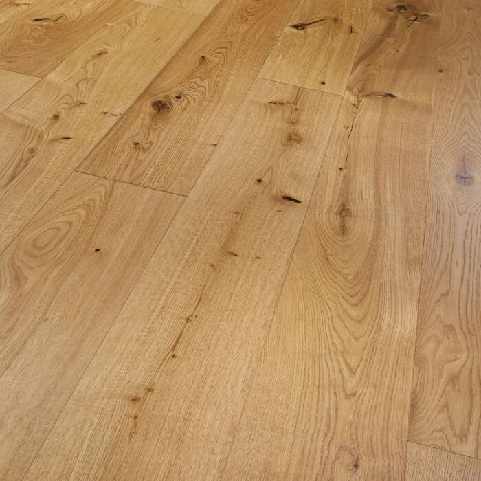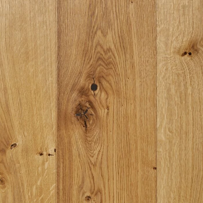 Gulvet er overfladebehandlet med naturolie, der fremhæver det naturlige spil i overfladen. Træet kommer med tydelige åretegninger og knaster, som giver et udpræget farvespil og rustikt look.