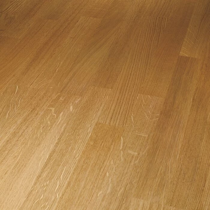 Gulvet er overfladebehandlet med mat lak, der beskytter mod slid og giver et naturligt look. Træet er med en harmonisk struktur og små farvenuancer, som giver et roligt og elegant udtryk.