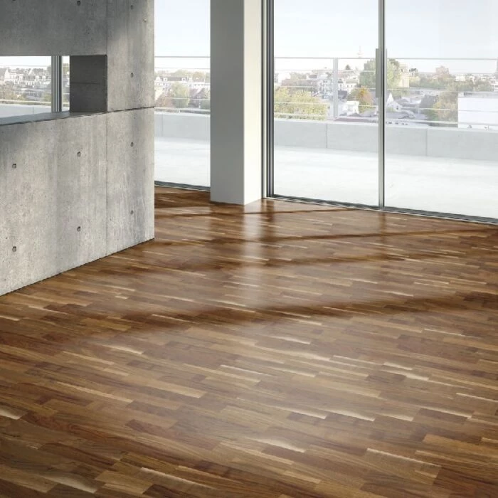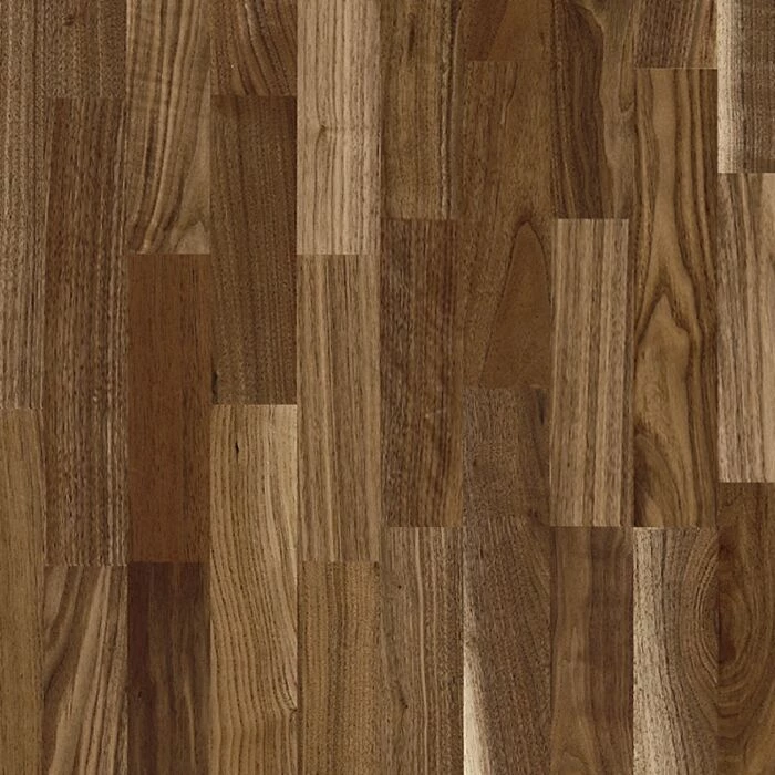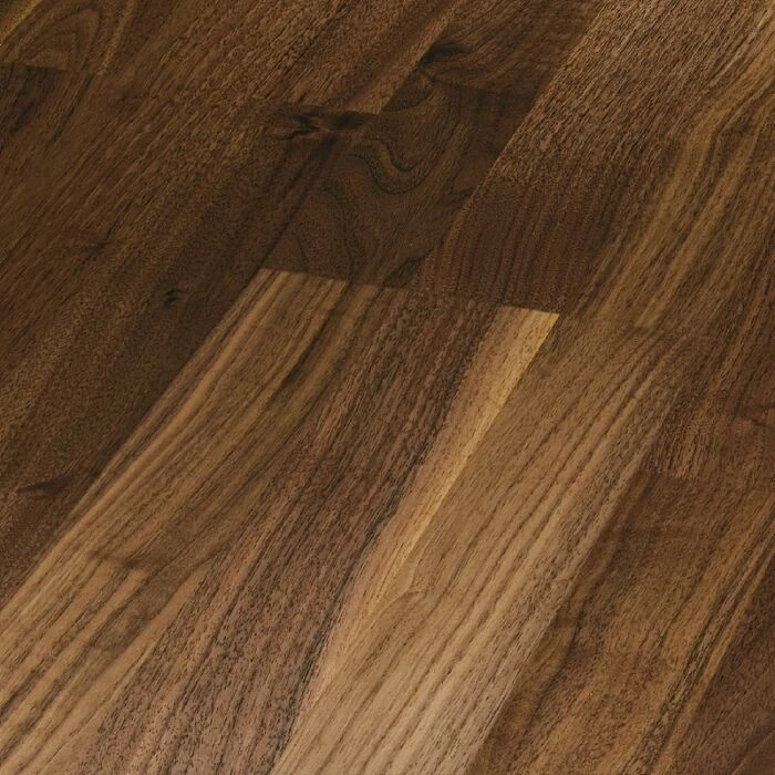 Klassisk 3-stavsparket i amerikansk valnød med en intens, mørk glød.