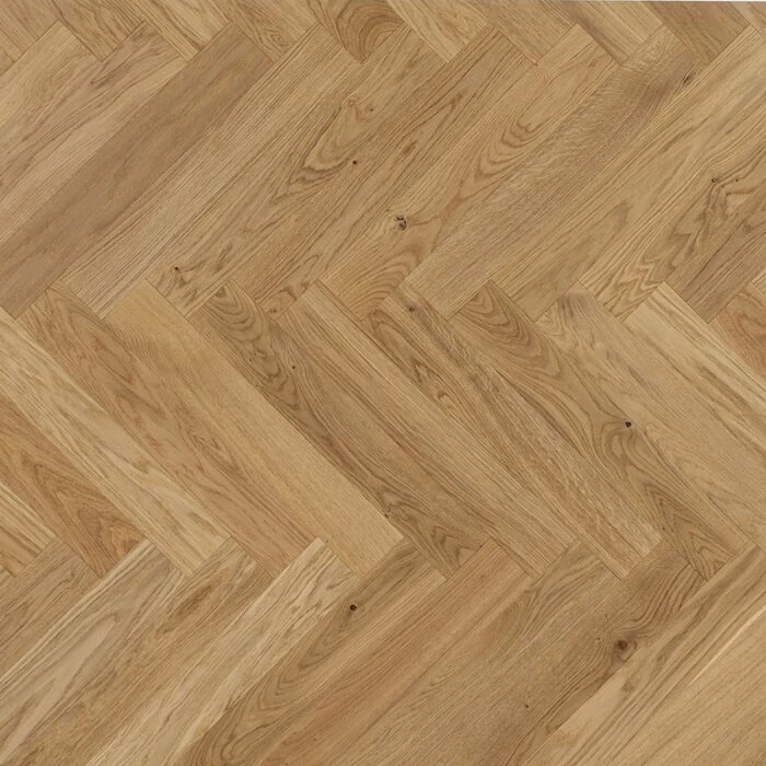 Naturligt lamelparketgulv fra Parador i et smukt sildebensmønster.