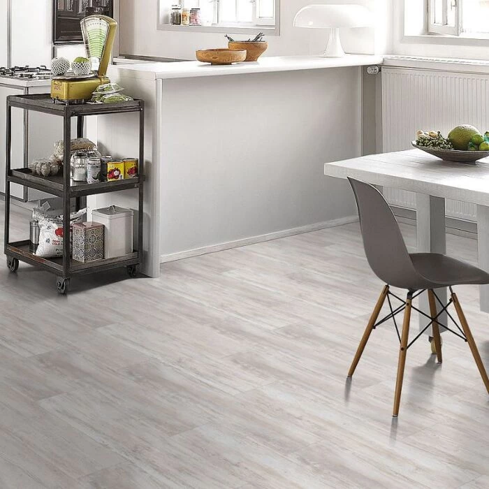 Elegant vinylgulv med fyrretræslook og et flot farvespil, der passer til både moderne og traditionelt interiør. Overfladen er uden samlinger, hvilket skaber et harmonisk udseende og gør gulvet nemt at holde rent.