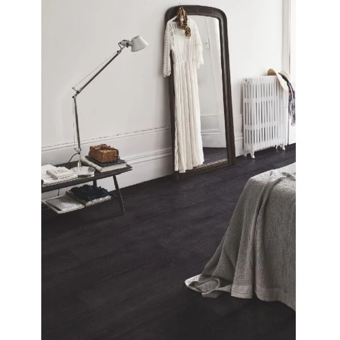 Laminatgulvet Black Painted Oak fra Pergo er et slidstærkt og vandafvisende gulv med en tykkelse på 9 mm.