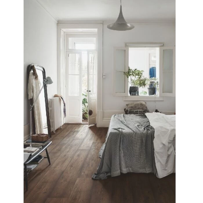Laminatgulvet Mature Brown Oak fra Pergo er et slidstærkt og vandafvisende gulv med en tykkelse på 9 mm.