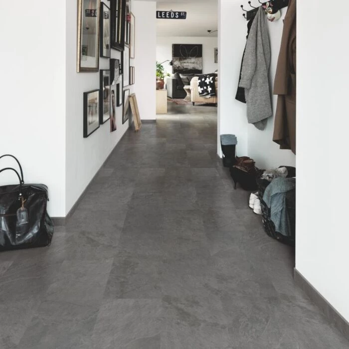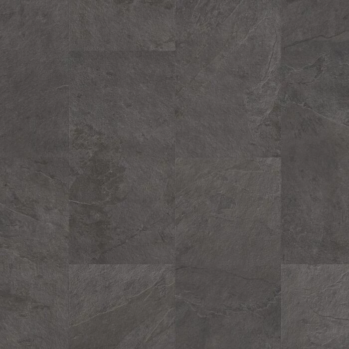 Smukt vinylgulv med et klassisk sort skifer-look.
