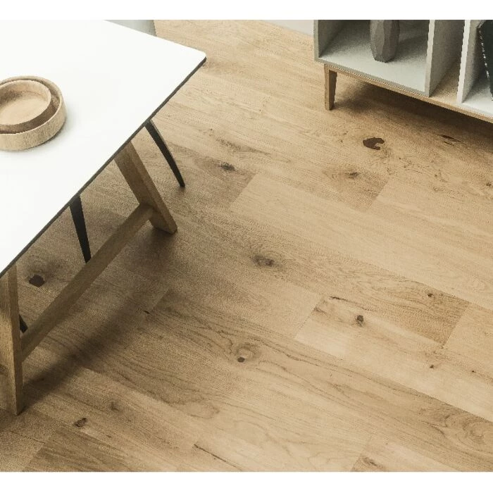 Gulvet er overfladebehandlet med ultramat lak natur og efterbehandlet med Easy To Clean for nemmere rengøring. MultiClic-systemet gør gulvet nemt at lægge helt uden brug af lim og giver præcise og flotte samlinger.